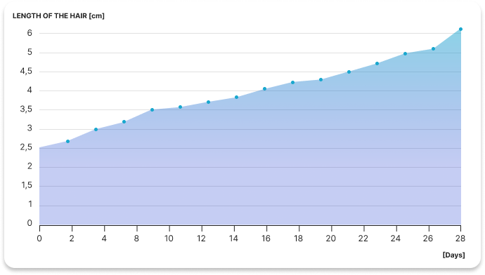 Resultado después de 28 días: pelo 6 cm más largo de media